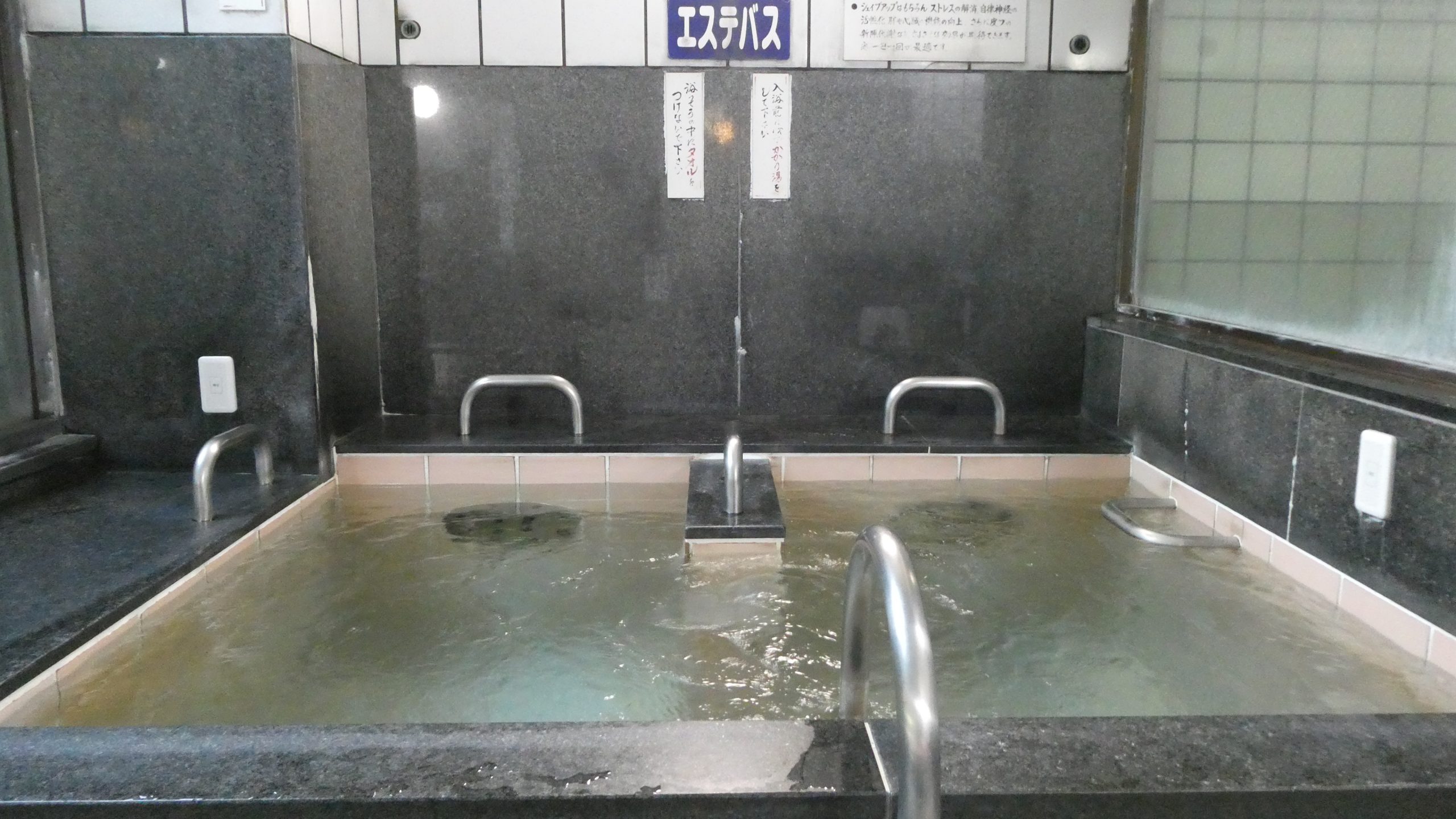 施設のご案内 FACILITIES ABOUT 施設のご案内 当湯は、軟水装置により単純アルカリ・ナトリウム水に変えた物で、この湯は古くから肌にやさしく、肌がしっとりとし、湯冷めしにくい美肌の湯として、全国各地の人気温泉となっています。大阪府下ではシャワ-など一部の水に軟水を取り入れた公衆浴場はありますが、全て軟水にしている公衆浴場は神徳温泉だけです。※シャンプ-石鹸の種類によっても効果は違います。無添加石鹸をお勧め致します。 こだわりの店 おかげさまで神徳温泉は1999年度の大阪市民が選んだ 「こだわりの店」に選ばれました。 これからも21世紀の公衆浴場として皆様のお越しをお待ちしております。 湯 種 お風呂 気泡浴超音波軟水 電気浴軟水 露天浴軟水 打たせ浴軟水 冷風室 冷水風呂軟水 天然薬草浴軟水エステバス軟水サウナスチームバス無料乾式サウナ別途 200円 軟水の特徴 洗顔しても肌がつっぱらず、しっとりスベスベしてきます。 毎冬にカユがっていた肌も今年はカユくなくなった。 子供のアトピ-が徐々に良くなった。 抜け毛が少なくなった。 髭剃りがスム-ズになった。 髪がサラサラになり傷みが少なくなった。 髪のパサつきがなくなりセットしやすくなった。 お年寄りの方の皮膚も良好になりました。 天然薬草風呂 ヨモギ、トウキ、センキュウ、バニノショウ、ドクダミ、ハッカ、イタドリ、 ヒメジオン等の薬草が入っています。 薬草の働きで、新陳代謝を良くし、 適当な刺激で血行を良くします。 冷水風呂 冷水風呂は15℃、体が引き締まります。 エステバス 噴流の前に体を置くと、体の表面が勢いよく振動します。 すなわち大量の流水による温浴マッサージです。 シェイプアップはもちろん、ストレスの解消、自律神経の活性化、肺や心臓の機能の向上、さらに、皮膚の新陳代謝などさまざまな 効果が期待できます。